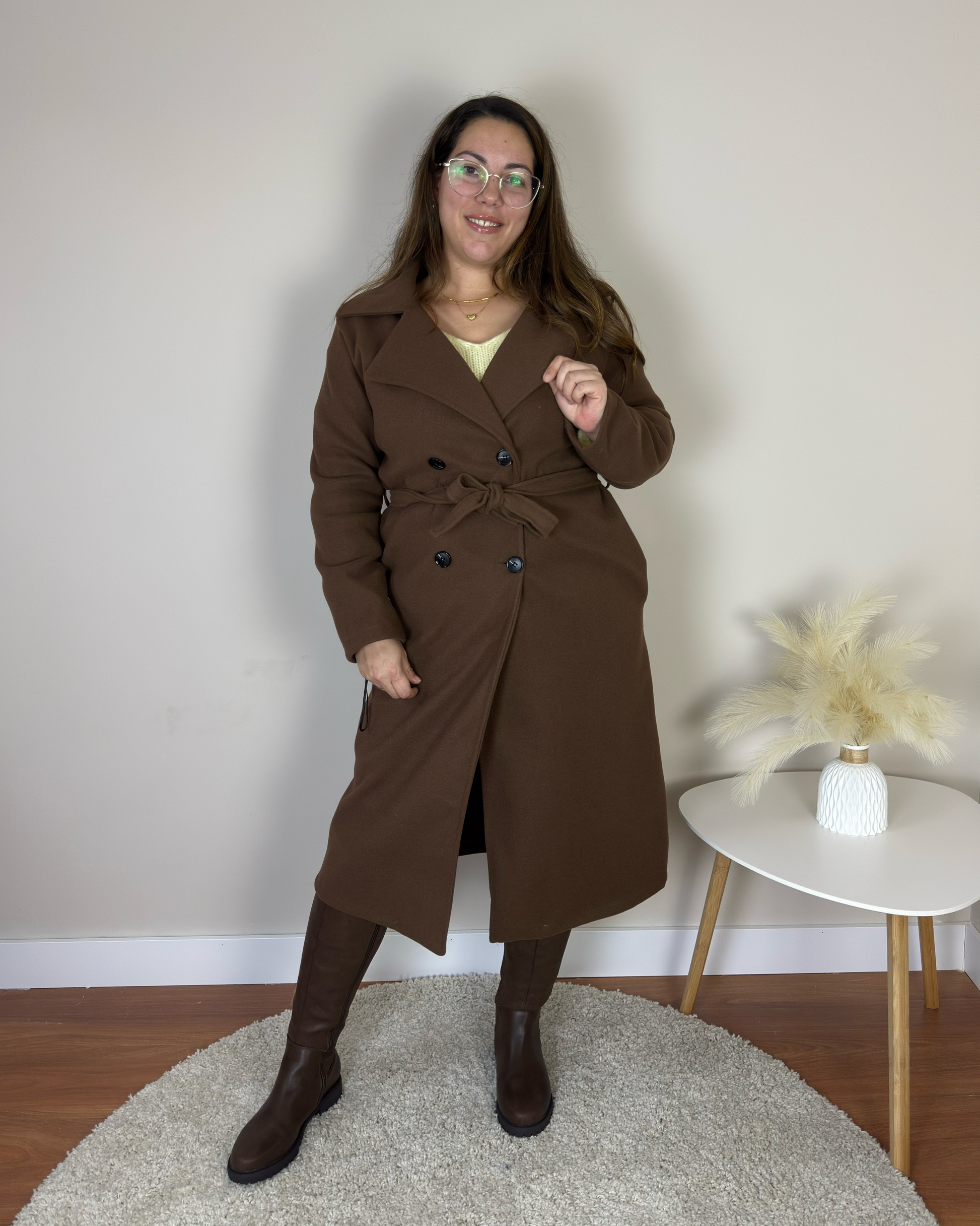 Envuelve tu otoño con la sofisticación del abrigo de paño Bruma. Su silueta clásica con solapas y cinturón realza la figura mientras aporta abrigo y estilo. Suave, versátil y atemporal, es la pieza ideal para elevar cualquier look en los días mas frescos de la temporada.