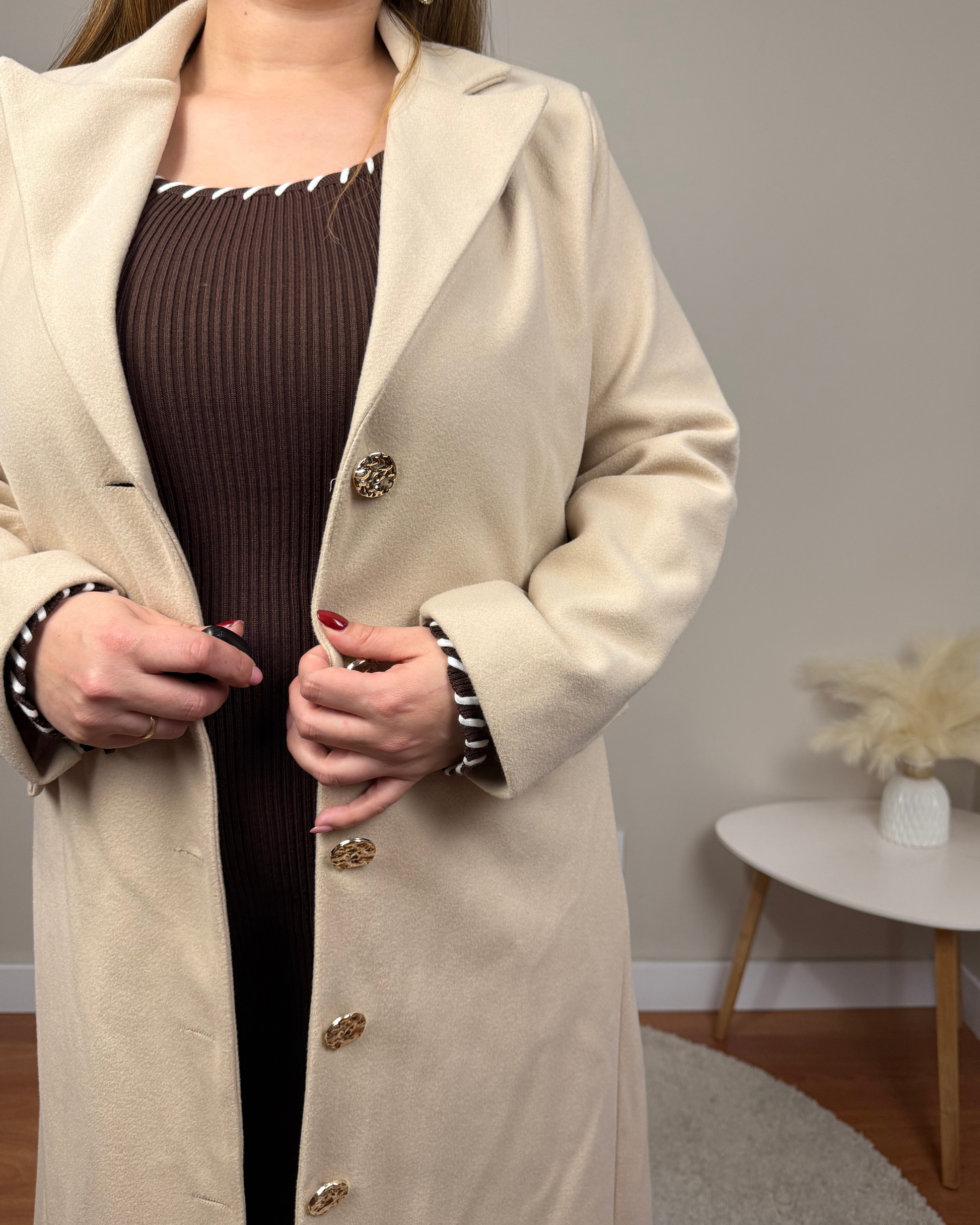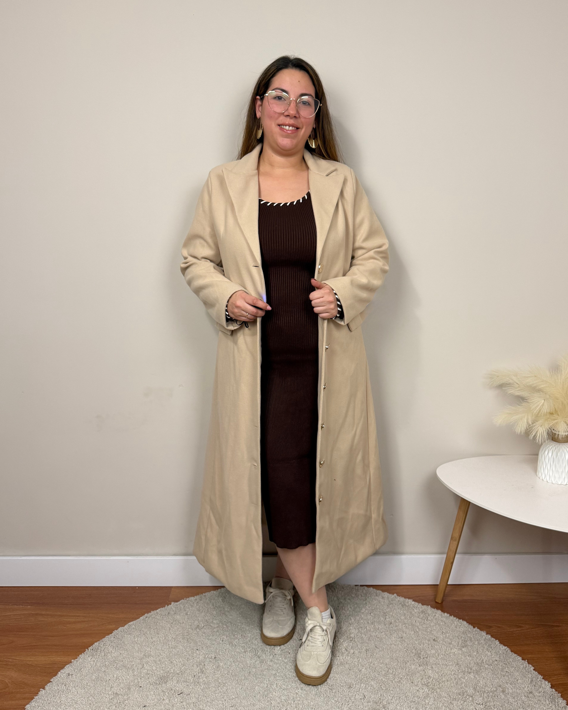 El Abrigo Iconic es un abrigo de paño de largo midi, con solapas clásicas y botones dorados que aportan sofisticación. Su interior forrado garantiza confort, mientras que los bolsillos decorativos completan un diseño elegante y atemporal, perfecto para el día a día.