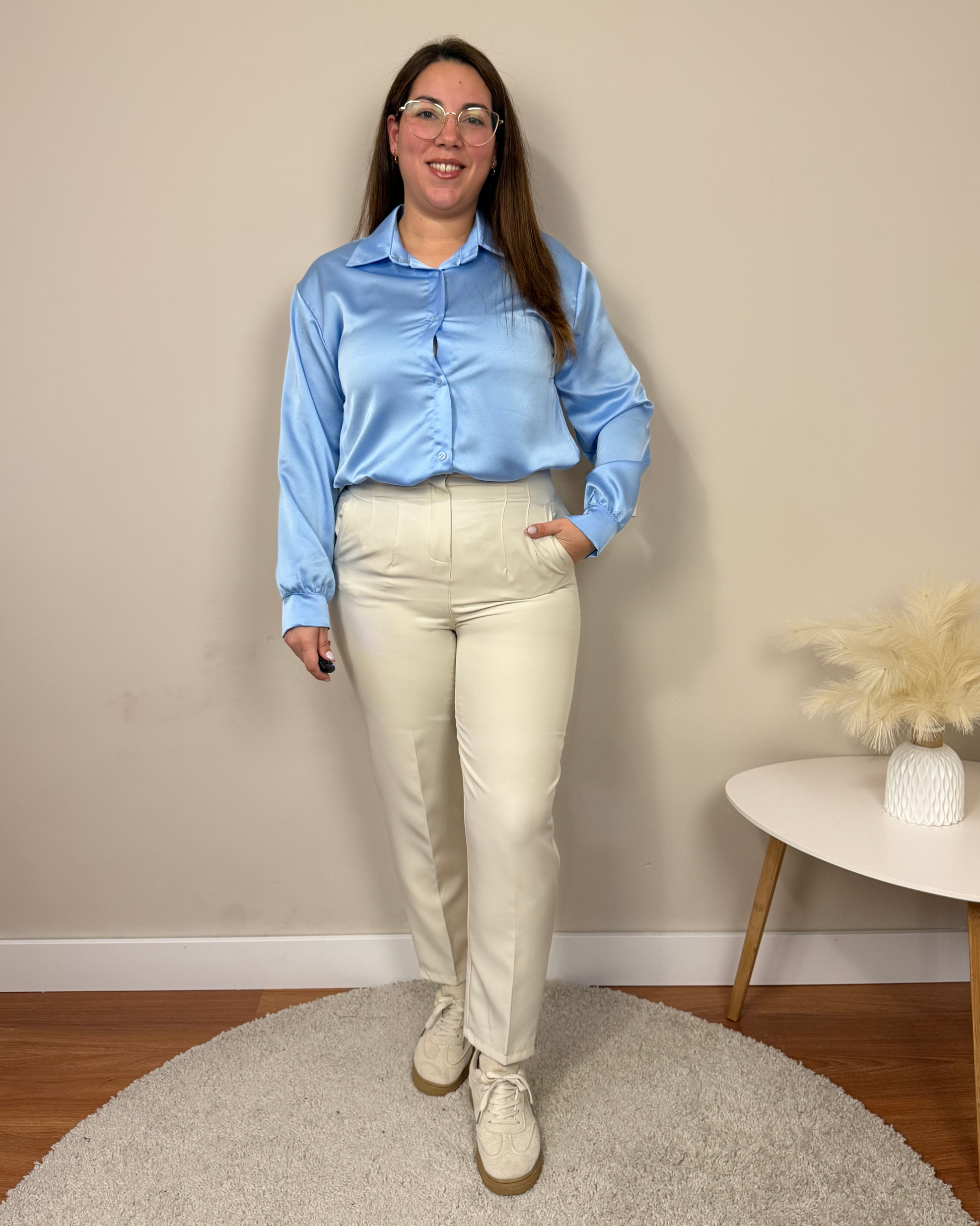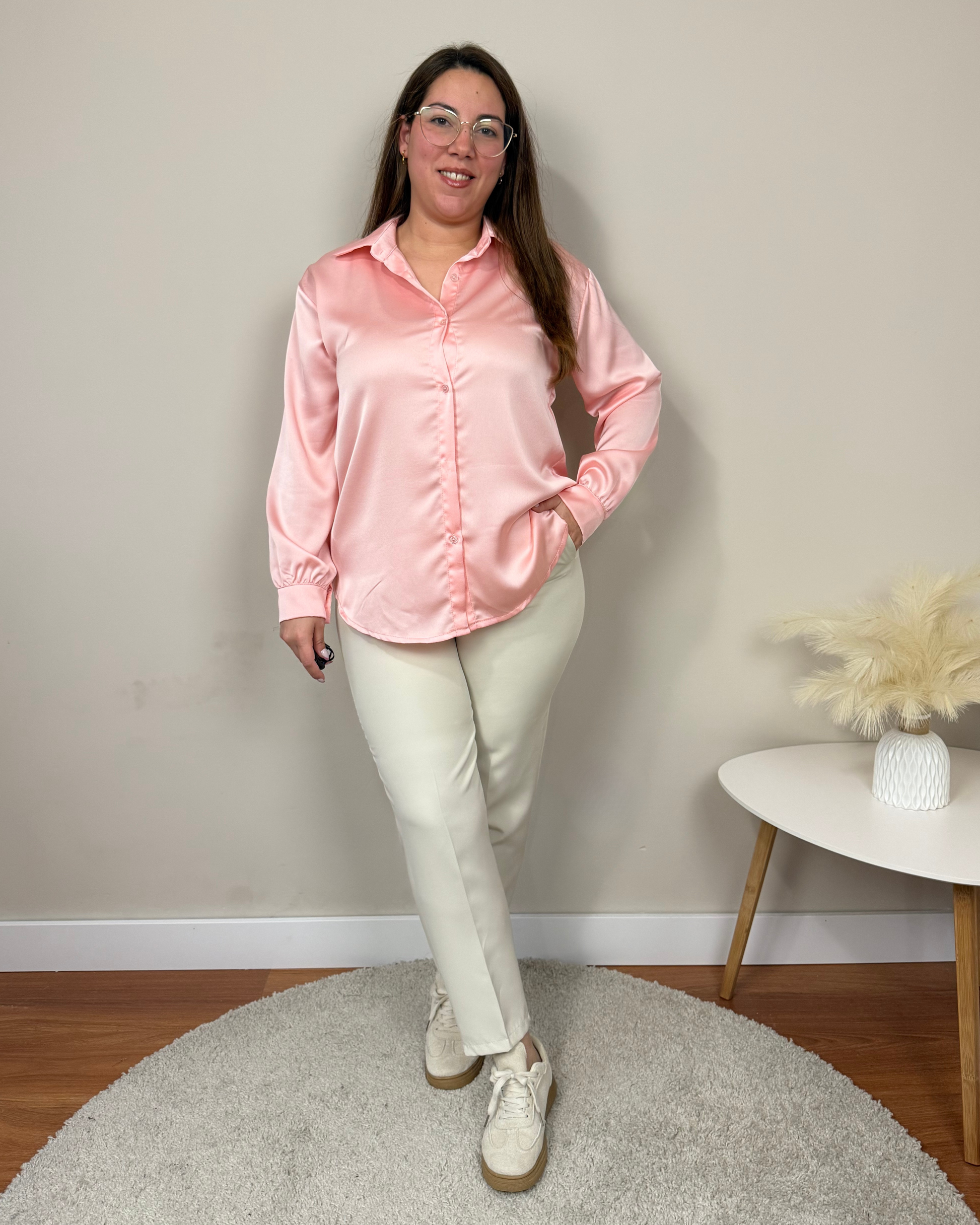 La Camisa Satén es una camisa confeccionada en tejido satinado, con una caída fluida y un acabado sofisticado. Su diseño atemporal la convierte en una prenda perfecta para elevar outfits de día o de noche y combinar fácilmente en cualquier ocasión.