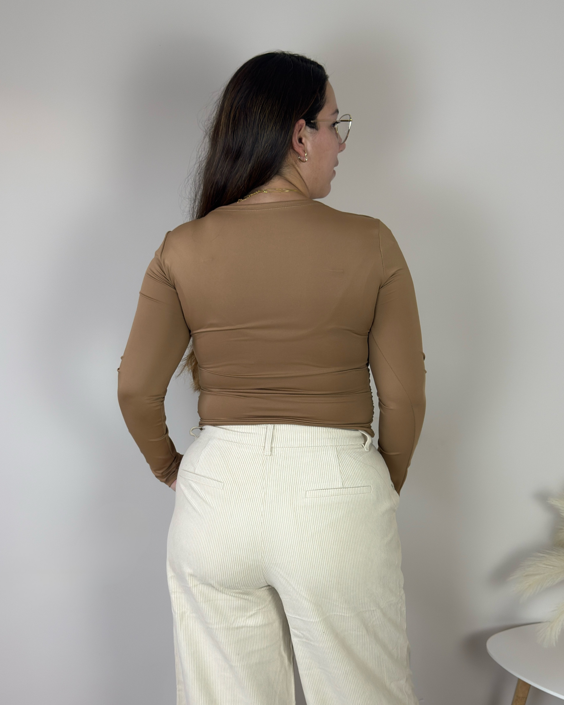 La camiseta Nova combina estilo y comodidad en un diseño favorecedor. Su escote cuadrado resalta el cuello y los hombros, mientras los fruncidos laterales estilizan la cintura y aportan un toque femenino. Es la pieza ideal para outfits de día y de noche