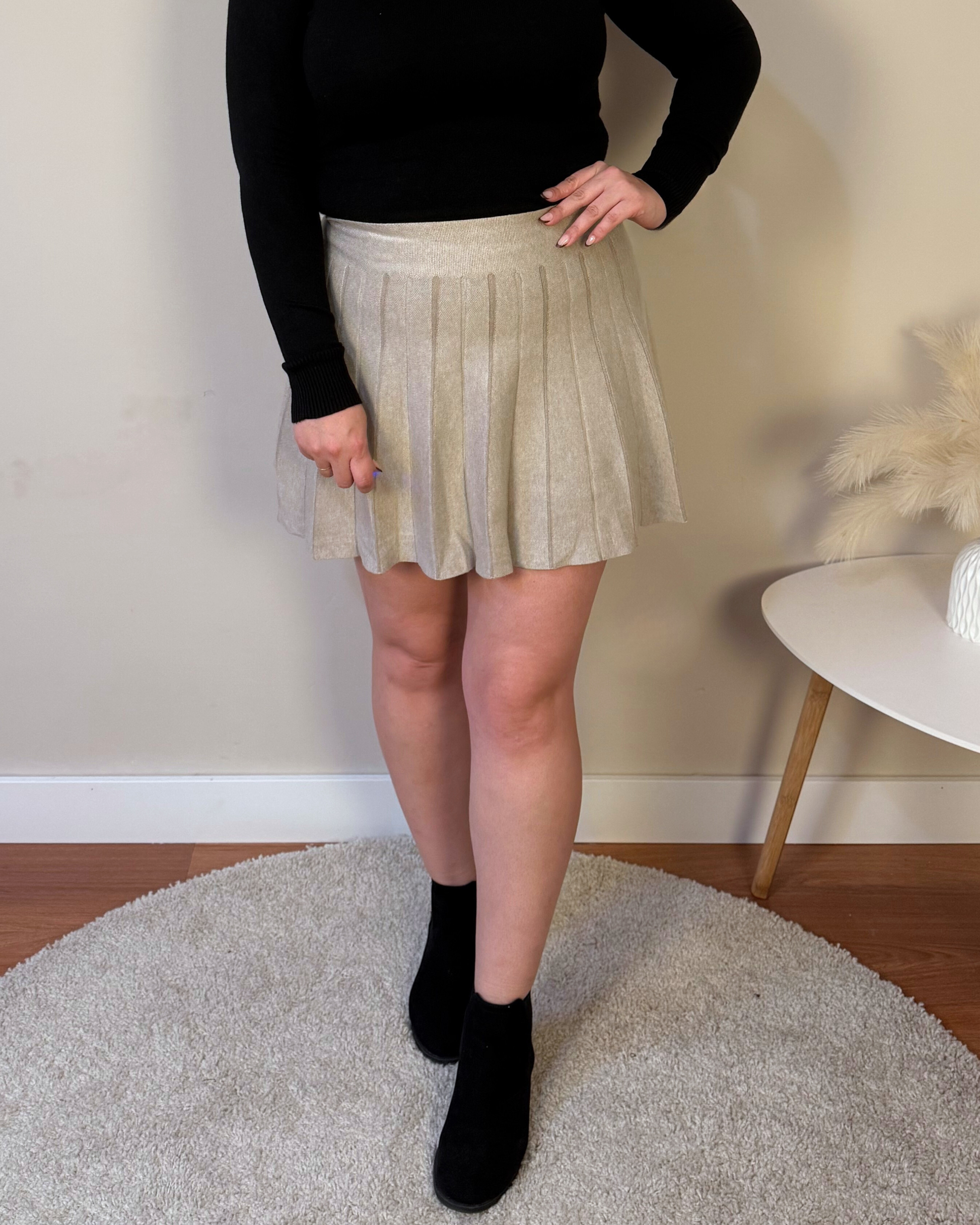 La Falda Olivia es una prenda de punto fino con tablas suaves que aportan movimiento y estilo. De corte corto y tejido cómodo, es ideal para crear outfits versátiles y femeninos. Será tu aliada perfecta esta temporada.