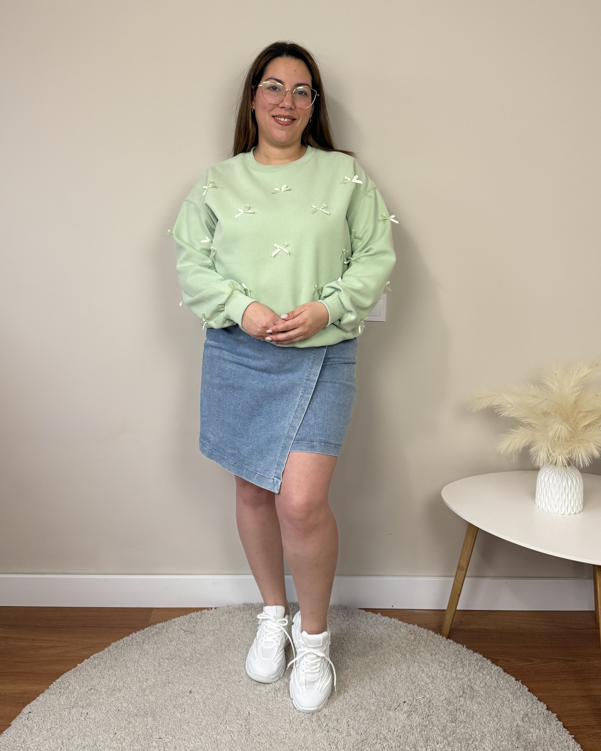 La Sudadera Lazos es una sudadera oversize de excelente calidad, con detalles delicados de lacitos satinados cosidos en el frontal y las mangas. Su corte amplio aporta comodidad y estilo, mientras que los acabados cuidados convierten esta prenda en un básico con un toque femenino y especial.